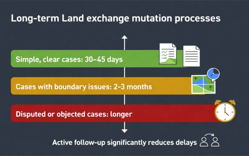 Exchange mutation is the only way to convert a land swap into officially recognized ownership within revenue records. Without it, exchanged land may still legally belong to the previous owner on paper,no matter how long it has been used.