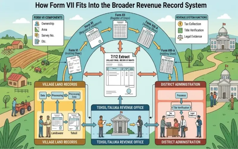Village Form VII does not stand alone. It is one part of a larger system of village registers maintained by the Patwari, each of which captures a specific aspect of land administration. Seeing where it sits within that system clarifies its purpose and authority.
